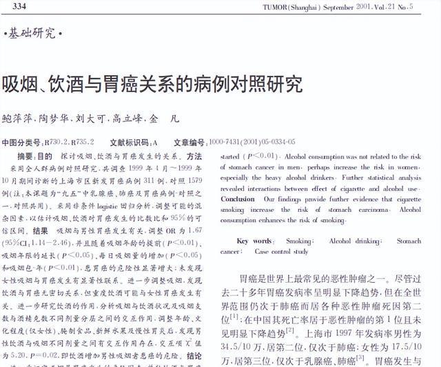 [1]鲍萍萍,陶梦华,刘大可,等.吸烟、饮酒与胃癌关系的病例对照研究[J].肿瘤,2001