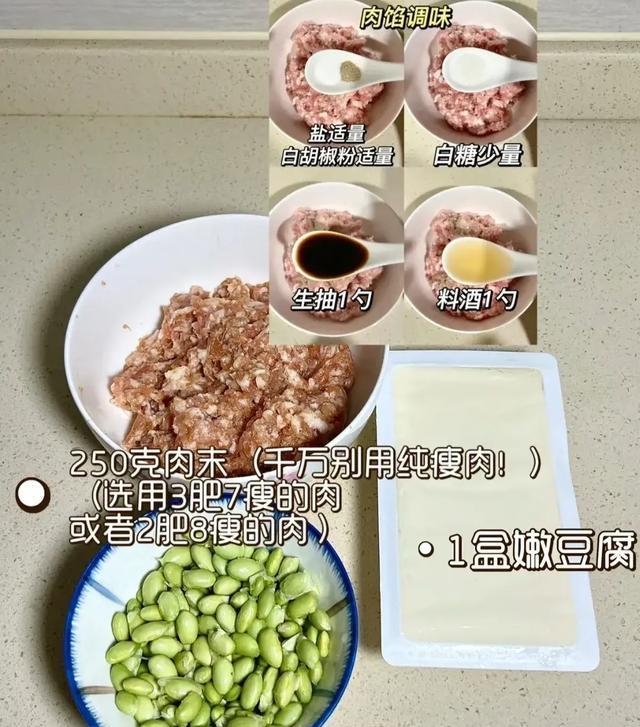 食材:肉沫,毛豆米,嫩豆腐~