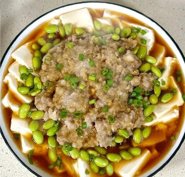 肉饼毛豆蒸豆腐
